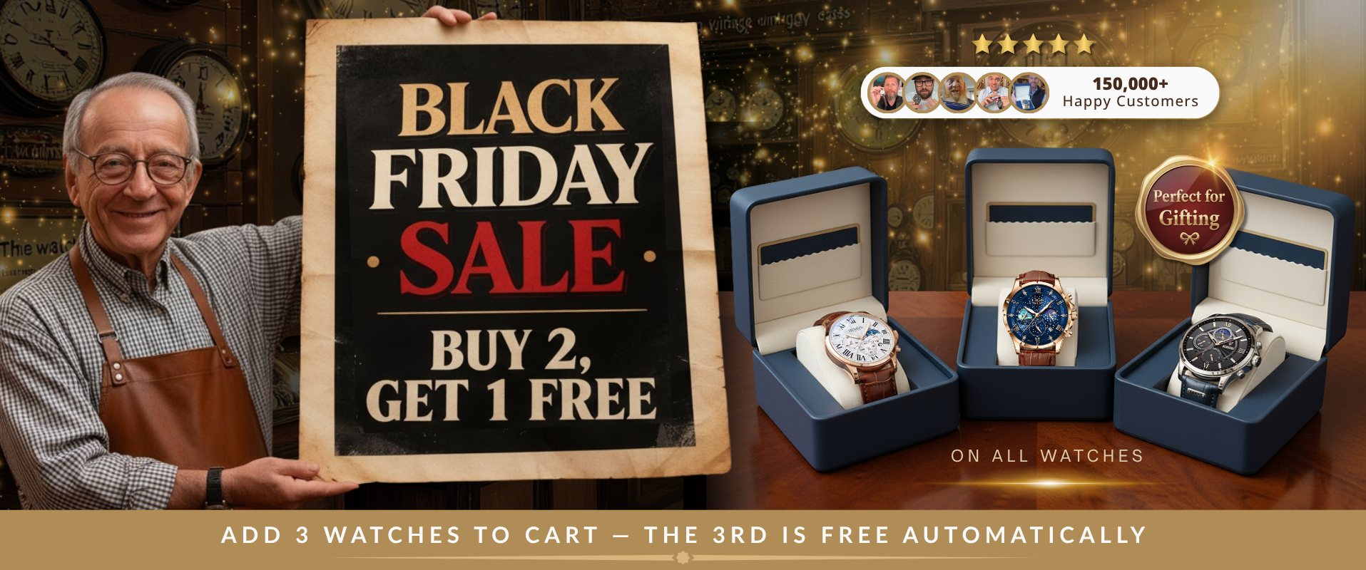 Add any 3 watches to your cart — the 3rd one is free automatically.